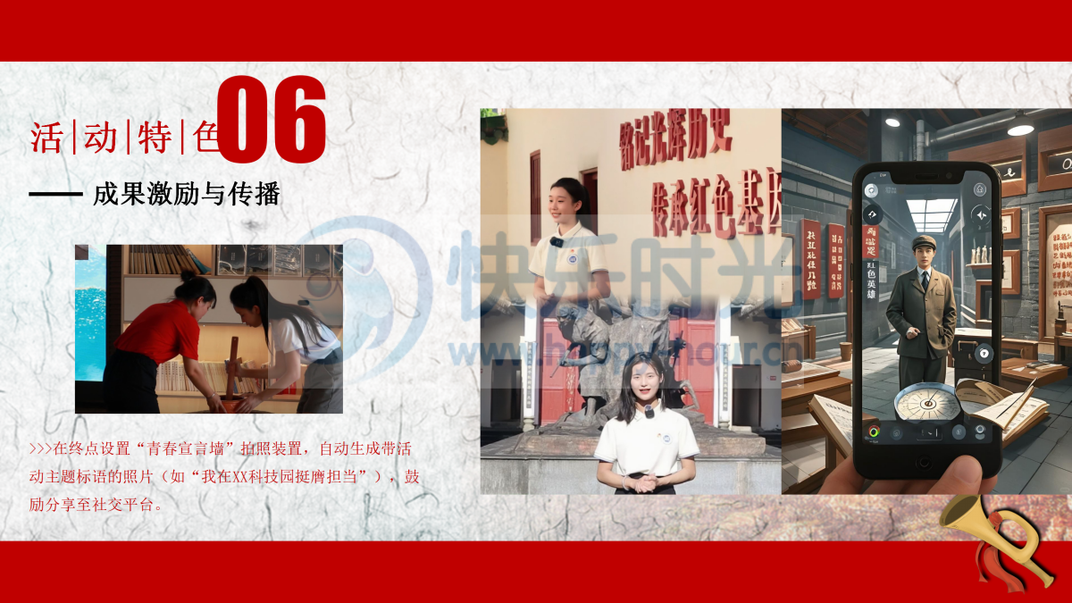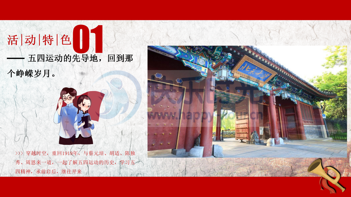 活动分为七月流火与八月骄阳两个阶段,分别代表中共一大于1921年7月23-30日在上海、8月3日于嘉兴南湖召开的会议。每个阶段均可独立为一个活动。 在第一阶段中,活动参与者以团队的形式参与活动,团队成员平均分为4个角色,分别代表一大代表中的包惠僧、李达、李汉俊、陈公博,4个角色需相互配合,重现一大会议在上海召开的历史事件。 在第二阶段中,团队成员需共同完成任务,通过手工制作红船,追溯建党初心,时刻牢记使命。